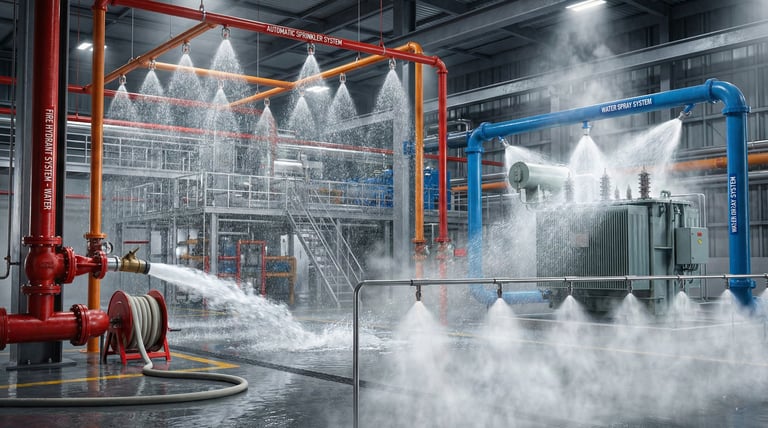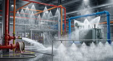 Water Spray Systems (HVWS & MVWS): High and Medium Velocity systems designed specifically to protect oil-filled transformers and flammable liquid tanks.