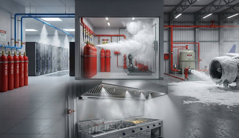 Automatic Sprinkler Systems: Heat-activated nozzles that provide localized, immediate suppression. We offer Wet-Pipe, Dry-Pipe, and Pre-Action variants.